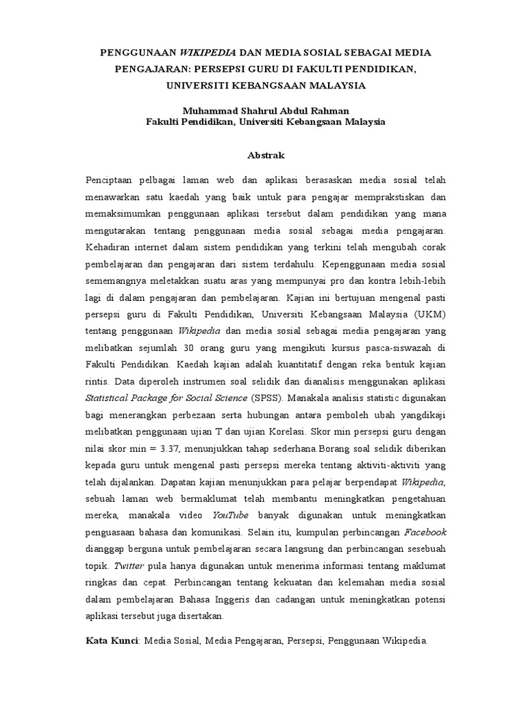 Pengarah Institut Kajian Etnik KITA Universiti Kebangsaan Malaysia UKM Profesor Ulung Datuk Dr Shamsul Amri Baharuddin berkata walaupun ia telah menjadi alat yang berkesan. Web 20 penting untuk media sosial karena mampu mempercepat pertumbuhan dari media sosial. Karangan Tentang Media Sosial.