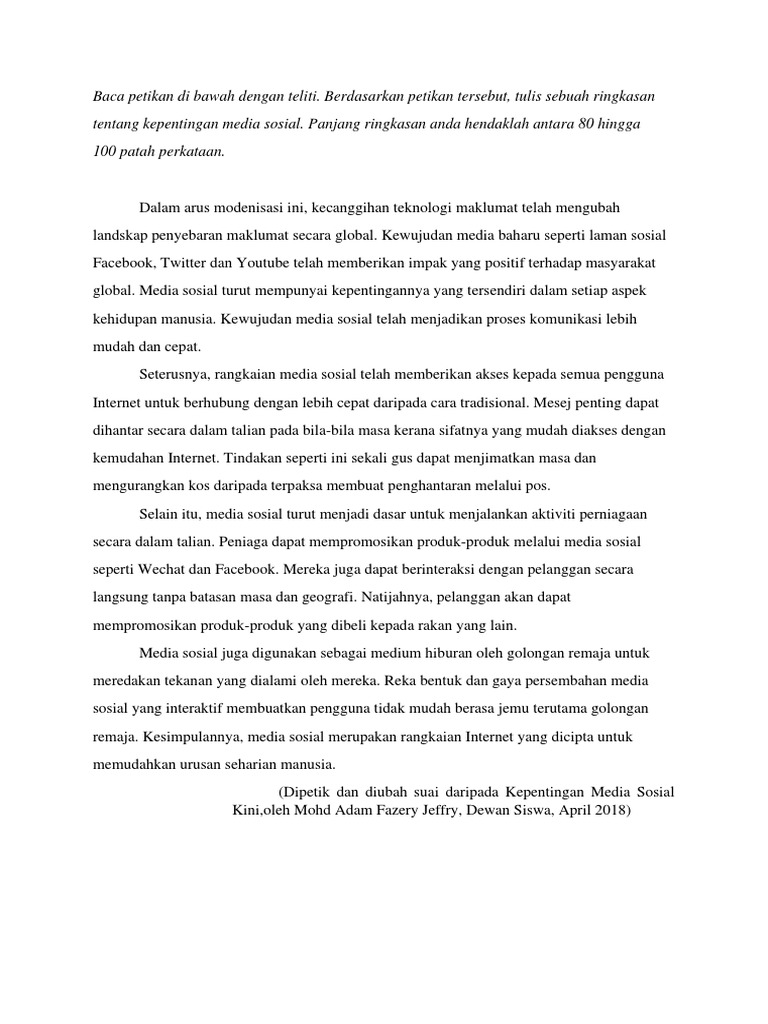 Pendekatan kuantitatif digunakan dalam kajian ini dengan melibatkan survei ke atas 244 orang remaja yang tinggal di perumahan Rakyat Desa Rejang Pantai Ria dan Seri Pantai. 2 mengungkapkan bahwa istilah media sosial menggambarkan sebuah media sehingga para pengguna dapat dengan mudah berpartisipasi dan memberi kontribusi di dalam media tersebut. Remaja Terpengaruh Media Sosial - Contoh teks berita tentang sekolah kesimpulan yang namanya kalimat deskripsi memang harus dibuat dengan baik dan benar.